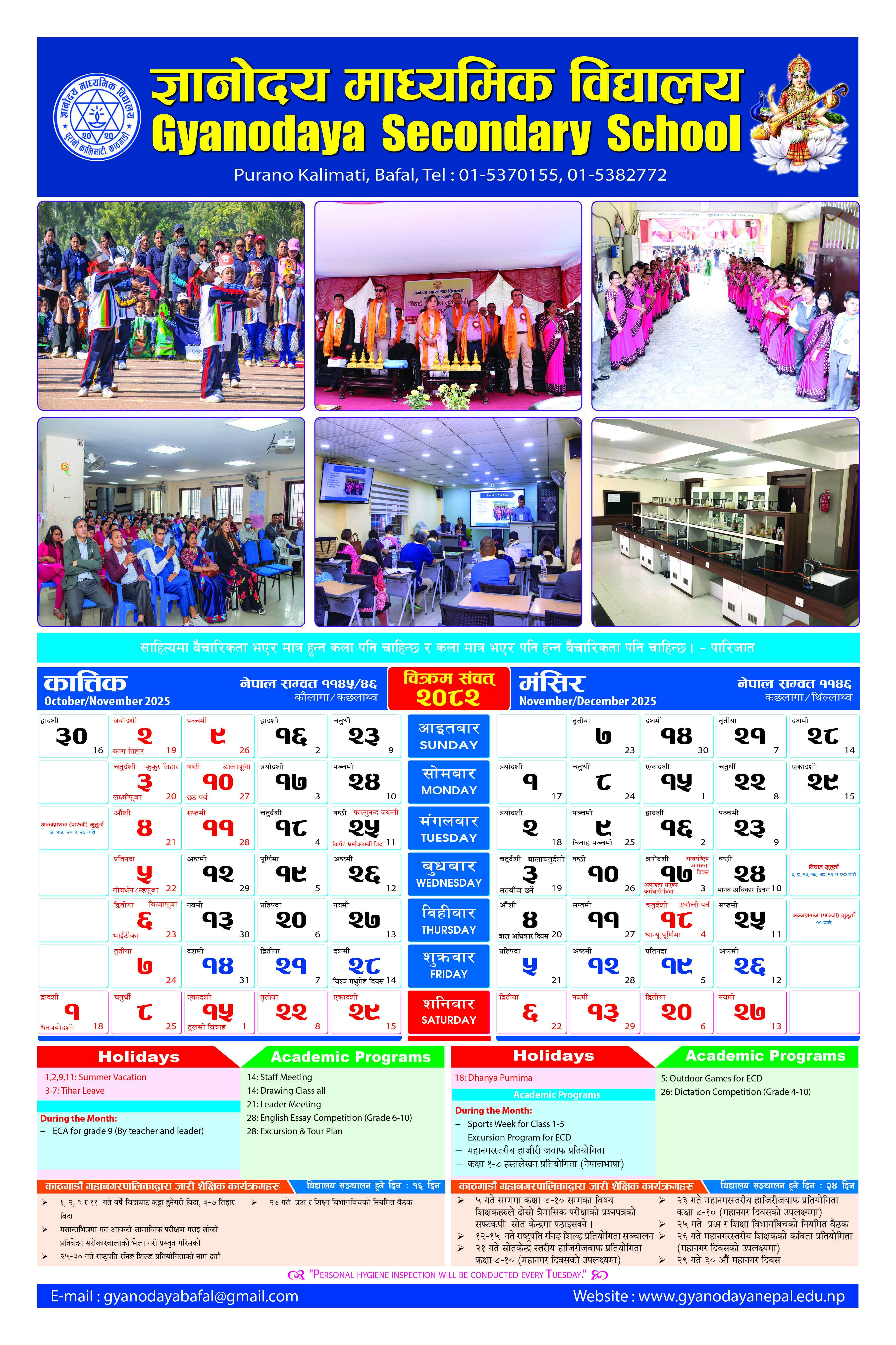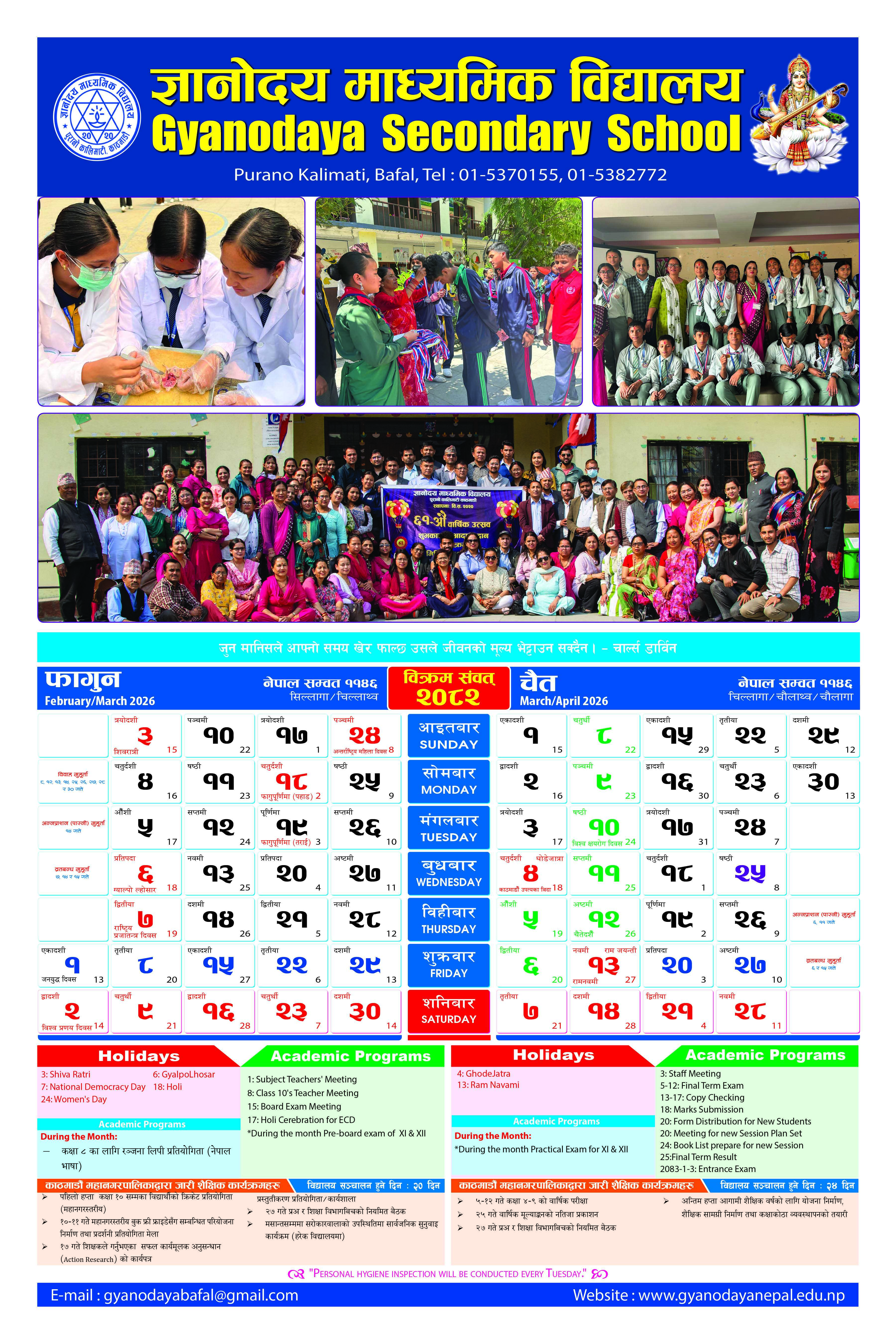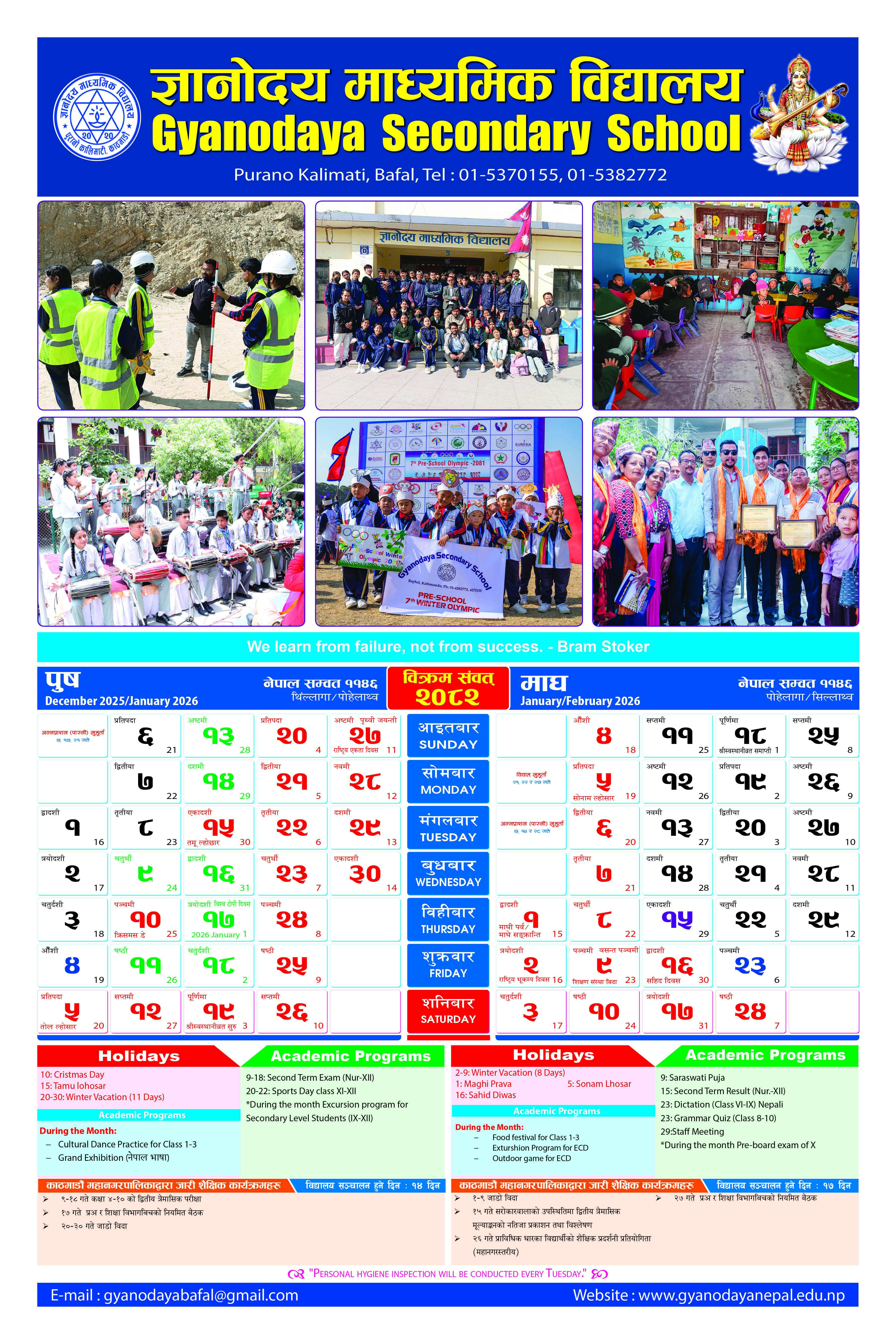 I am glad to know that Gyanodaya Secondary School strives to provide practical education using modern well equipped technology. Our commitment is to have access on internet facilities and ICT resources to enhance teaching and learning activities for students based on the reach of present world context which is reflected through Hotel Management and Science laboratories, as well as our Engineering workshops what we are applying.......